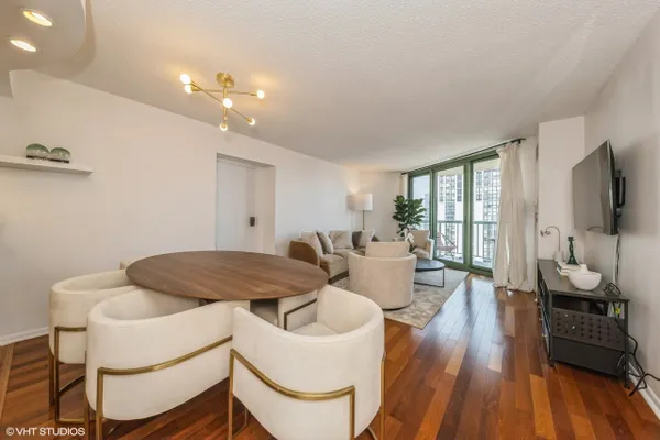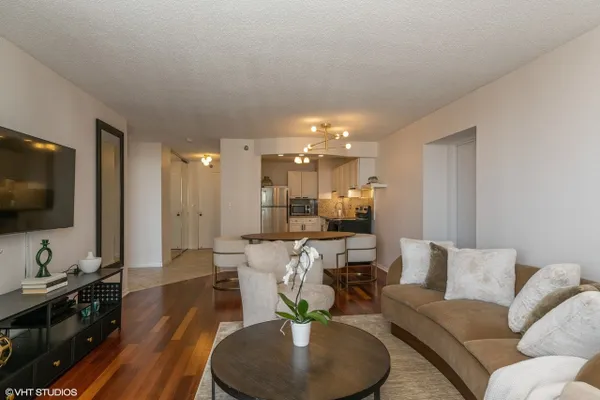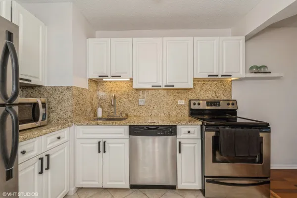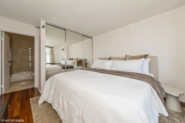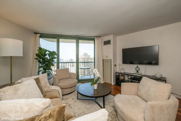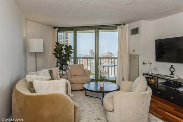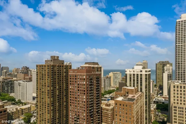 Experience stunning panoramic views of Lake Michigan from this beautifully updated, high-floor 2 bed/2 bath residence in the sought-after Gold Coast Galleria. Bathed in natural light, this thoughtfully designed split-bedroom floor plan features floor-to-ceiling windows and hardwood flooring throughout the living area and bedrooms. The modern kitchen boasts stainless steel appliances, granite countertops, a full slab granite backsplash and ample room for a dining area. Both bathrooms have been refreshed with updated fixtures, brand new shower heads, medicine cabinets, and modernized sinks and faucets. The primary en suite offers a luxurious granite and frameless glass shower. Step onto your private balcony to take in expansive North, East, and West exposures - the perfect spot to unwind above the city. Additional highlights include a brand new living room HVAC unit (installed June 2024), generous bedroom sizes, ample pantry/closet space and the option to install in-unit laundry. Enjoy unparalleled convenience with 24-hour door staff, on-site management and maintenance, package receiving, and access to the rooftop sun deck. Residents also benefit from direct access to the premier Fitness Formula Club (FFC) offering state-of-the-art amenities including a pool, basketball court, pickleball, Pilates, group classes, personal training, sauna, spa services, and a cafe. One deeded garage parking space is available separately for 30,000. Ideal location just steps from CTA bus routes, Red Line, grocery stores, cafes, restaurants, parks, and the lakefront. Investor-friendly and pet-welcoming building with low monthly assessments that include basic cable and internet. Whether you're looking for your next home or a smart investment, this move-in ready unit puts you in the heart of the Gold Coast.